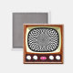 A little TV set template design based on the sort of TV sets that were around in the 1950s with an attractive Op Art style design, quite hypnotic looking. However you can also replace the image with a picture of your own, B&W or colour of course, although B&W might look best, also given this button is not very big a simple strong image, or detail of a larger image will probably work best.