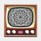 A little TV set design based on the sort of TV sets that were around in the 1950s with an attractive kaleidoscope design, quite surreal. However you can also replace the image with a picture of your own, B&W or colour of course, although B&W might look best, also given this button is not very big a simple strong image, or detail of a larger image will probably work best.