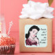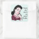 Square sticker with an image of a brunette 50s woman with her finger on her chin as if poised to express a thought on mint. Customisable text. See matching favour tag and label. See the entire Nifty 50s Sticker collection in the INVITES | Stickers & Labels section.