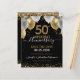 Elegant Faux gold glitter with shimmering confetti highlights on the top and bottom border. All text is adjustable and easy to change for your own party needs. Great elegant 50th birthday template design. Balloon graphics template
