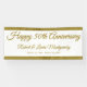 Add this Happy 50th Wedding Anniversary Banner to your event accessories. Designed with gold coloured lettering and stripes, the text reads: Happy 50th Anniversary, The Couple's Names, The Wedding Date and Anniversary Date. To personalise, simply use our easy template to insert the names and dates, replacing the sample text. It's fast and easy. Enjoy!