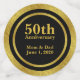Black and faux (not foil) gold pieces celebrate 50th anniversary. A black centre in the middle and has a faux gold border with gold look text. Text can be personalised (shown: 50).