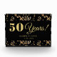 Give your parents this keepsake 50th Anniversary Black and Gold Personalized Names Photo Block. It is designed with a modern black background and faux gold glitter confetti on the top and lower areas. The text is "50 Years" in elegant faux gold calligraphy script lettering followed by couple's names and anniversary date.