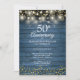 Featuring pretty string lights and delicate golden love hearts confetti on a blue rustic wood panels background. Personalize with your special fifty years golden anniversary information in chic lettering. Designed by Thisisnotme©