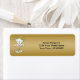 50th Anniversary Labels with White Champagne Glasses and Ribbon on Gold Background. Personalise with your own information.