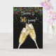 Champagne toast in colourful falling confetti on black for 50th wedding anniversary congratulations.