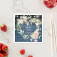Featuring a delicate watercolor floral greenery garland and pretty string lights on a blue rustic wood panels background, this chic botanical 50th wedding anniversary napkin can be personalised with your special anniversary information in elegant text. Designed by Thisisnotme©