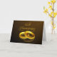 Pretty gold script 50th anniversary with golden brown and dark black background with subtle swirling lines and two interlocking wedding band rings. An elegant and rich celebration of 50 years of wedding and wedded bliss. All Designs Copyright © 2012 www.CuteComfy.com