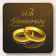 Pretty gold script 50th anniversary with golden brown and dark black background with subtle swirling lines and two interlocking wedding band rings. An elegant and rich celebration of 50 years of wedding and wedded bliss. All Designs Copyright © 2012 www.CuteComfy.com