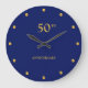 50TH Anniversary & Golden Dots on Navy Blue Large Clock