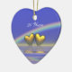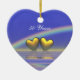 Hanging ornament with my image of golden hearts floating on the water under a rainbow. Customisable text says "50 Years".