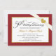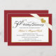 Create your own personalised 50th Wedding Anniversary Party Invitations -- Beautiful rich apple red border with [printed] white ribbon and golden gemstone bling heart. Classic engraved-look typography with fancy vintage style swash script lettering -- Elegant, affordable luxury, and uniquely customised for you! Just add the names, date, and details for your special milestone anniversary celebration. **NOTE: All elements of this design are part of the PRINTED image -- the ribbon, jewelled brooch, and frame are NOT raised, embossed, or presented as real embellishments. Sized for small invitation cards. Click "Customise It" to change the size, paper options, or font choices. Other sizes and styles available in gallery. © Teri Francis. Coordinating sets with matching postage and thank you cards available upon request.