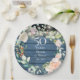 Featuring a delicate watercolor roses floral garland and pretty string lights on a blue wood panels background, this chic rustic 50th wedding anniversary paper plate can be personalised with your special anniversary information in an elegant text. Designed by Thisisnotme©