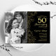 50th Anniversary With Photo - Black Gold Floral Invitation