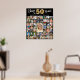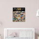 Create a 50th birthday photo memory display foam board utilising this easy-to-upload photo collage template with 51 pictures of him or her through the years for a fun birthday party decoration and commemorative keepsake. The design features the title CHEERS TO 50 YEARS with gold foil balloon numbers and your custom text (the sample says HAPPY BIRTHDAY NAME) in your choice of background colour (shown in black). OPTIONS: The sample is shown in a 26x30" size on Value Paper (Matte); other standard and custom print sizes and paper quality, Instant Digital Download file for printing locally or transferring the design to a foam board, banner, canvas or other product options are available on the ordering page. RESIZING TIP: Choose Custom Size for even borders by changing the height and width proportionately AFTER clicking the UNLOCK icon (looks like a chain link). ASSISTANCE: For help with design modification or personalisation, colour change, resizing or transferring the design, contact the designer BEFORE ORDERING via the Zazzle Chat MESSAGE tab or email makeitaboutyoustore@gmail.com.
