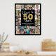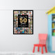 50th Birthday 57 Photo Collage Cheers to 50 Years Photo Display Poster Print. Create a photo memory display board sign to celebrate a 50th birthday utilising this easy-to-upload photo collage template with 57 square pictures through the years with the title CHEERS TO 50 YEARS with faux metallic gold balloon numbers and your text in your choice of text and background colours (shown in white on black). OPTIONS: The sample is shown in a 27x32.5" size on Value Paper (Matte); other standard and custom print sizes, paper quality and framing, Instant Digital Download file for printing locally or transferring the design to a foam board, banner, canvas or other product options are available on the ordering page. RESIZING TIP: Choose Custom Size for even borders by changing the height and width proportionately AFTER clicking the UNLOCK icon (looks like a chain link). ASSISTANCE: For help with design modification or personalisation, colour change, resizing or transferring the design, contact the designer BEFORE ORDERING via the Zazzle Chat MESSAGE tab or email makeitaboutyoustore@gmail.com.