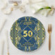 50th Birthday Art Deco Gold Blue Great Gatsby Paper Plate