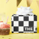 Make your gift stand out at a 50th birthday party or fiftieth milestone anniversary celebration with wrapping paper featuring a bold black and white chequered pattern with the words "The Big Five Oh" repeating in alternating white on black and black on white text.