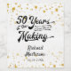 Celebrate a 50th birthday with black and gold confetti wine or beverage labels featuring a retro script typography design stating 50 YEARS IN THE MAKING which incorporates their birth year within the design and includes your custom text (the sample shows NAME) and date. Contact the designer via Zazzle Chat or makeitaboutyoustore@gmail.com if you'd like this design modified, on another product or would like coordinating items.