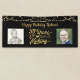 Celebrate a 50th birthday with this black and gold party banner sign with string lights featuring a retro typography title design of 50 YEARS IN THE MAKING that incorporates their birth year as part of the design, 2 photos (fun to include Then and Now photos) and your personalised custom message (the sample shows HAPPY BIRTHDAY NAME). PHOTO TIP: For fastest/best results, choose a photo with the subject in the middle and/or pre-crop it to a rectangle shape BEFORE uploading and use the CHANGE tab in the PERSONALIZE section. CHANGES: Change the background colour, select a styled graphics background or change the personalised text font style, colour, size and placement by clicking on CUSTOMIZE FURTHER in the PERSONALIZE section. Contact the designer via Zazzle Chat or makeitaboutyoustore@gmail.com if you'd like this design modified, on another product or would like coordinating items.