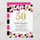 50th Birthday Black Hot Pink Gold Glitter Confetti Invitation