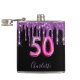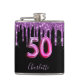 50th birthday black purple glitter script friends hip flask