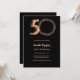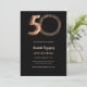 A modern, stylish photo invitation for a 50th birthday party. A black background, rose gold text. Personalise and add your party details.