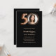 A modern, stylish photo invitation for a 50th birthday party. A black background, rose gold text. Personalise and add your party details.