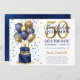 This fabulous men's 50th birthday party Save the Date card featuring a 2-layer navy blue and gold cake with navy blue and gold balloons, the number 50 in gold and shiny blue confetti would be perfect for asking people to put this special date aside for the upcoming 50th Birthday Party. It is traditional and classic while being fresh, modern and contemporary. The back is a coordinating navy blue foil.