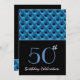 This blue peacock feather design is an elegant way to invite folks to a 50th birthday party celebration. All text is totally customisable. You can experiment with different paper types by clicking on the "Invitation Options" tab on the upper right hand corner. This design is currently featured on an ice hued metallic paper which gives your birthday invitation a warm and festive shimmer and shine.