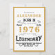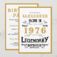 For those born in 1976 and celebrating their 50th birthday we have the ideal birthday party invitation with a vintage feel. The white background with a black and gold vintage typography design design is simple and yet elegant with a retro feel. Easily customize the text of this birthday gift using the template provided.