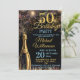 A stylish 50th Birthday Party Invitation featuring a bottle of bubbly in gold, fireworks with gold and blue text all on a black background . A gorgeous invitation to send to family and friends to celebrate a special birthday. All text can be amended as needed - more text can be added on the back or delete the text box if need needed.