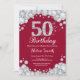 50th Birthday Burgundy Red and Silver Diamond Invitation