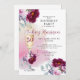An elegant stylish 50th birthday invitation featuring a floral champagne glass, pink and burgundy florals, and a watercolor wash background in pink hues, with an elegant script signature name. Stylish and modern.
