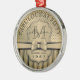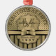 50th Birthday Champagne Gold Polka Dot Stripes Bow Metal Ornament
