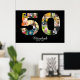 A unique 50th keepsake gift for anyone celebrating the big 50. A truly wonderful way to say happy 50th Birthday to somebody special with a unique classical design multi photo wall poster. Use your photographs of family or friends to design this item of home wall decor. Your Instagram style photography can create an artistic hipster style modern personalized gift for a sentimental milestone birthday keepsake. Use our template for your own custom photo collage. Show your love for that special person. The poster has a simple elegant chic format with a beautiful typography. The design focuses on your 14 pictures in the "50". You can easily edit the text. The photo's used in the example are all square (Instagram style) with the person fairly central. You can use landscape and portrait style images which will be automatically cropped. Swap your images around to different positions and have fun creating your layout. Pop in to our store and browse for the range of 50th birthday photo gifts.