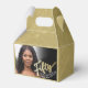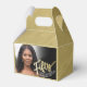 Fifty gold script and gold look two sided two landscape photos party favour boxes. Personalise this 50th birthday party script photo favour box with your own birthday girls name and photos of your birthday girl or boy. Other years and matching items are available and can be created by request. © Original design by Sarah Trett for www.mylittleeden.com on Zazzle.