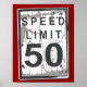 50th Birthday Funny Grungy Speed Limit Sign Poster