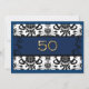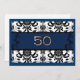 Damask background with bold blue banner. The number 50 stands out in a bright faux metallic Gold. Change invitation text to 50th Anniversary or 50th Birthday.