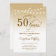 Elegant gold and white design with script font and fairy string lights. Cheers to 50 years. Can be personalized into any age! Message me if you need further customization.