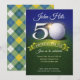 Celebrate a milestone in style with this elegant 50th birthday golf-themed invitation—perfect for honoring memories with a fun, sophisticated design guests will love. Featuring a golf ball, banner and fun party font. Backer is green and gold plaid.