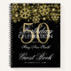 An elegant and sophisticated winter 50th Birthday Guest Book template with Gold Faux Glitter Snowflakes & bokeh glowing lights on Black background (you can change the background colour to suit your needs), and custom name + date text.
