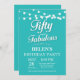 50th Birthday Invitation with String Lights Aqua Turquoise Background. Woman Birthday Party. Fifty and Fabulous. Any age. For further customisation, please click the "Customise it" button and use our design tool to modify this template.