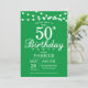 50th Birthday Invitation with String Lights. Green Background. Men or Women Birthday. 13th 15th 16th 18th 20th 21st 30th 40th 50th 60th 70th 80th 90th 100th, Any age. For further customisation, please click the "Customise it" button and use our design tool to modify this template.