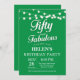 50th Birthday Invitation with String Lights Green Background. Woman Birthday Party. Fifty and Fabulous. Any age. For further customisation, please click the "Customise it" button and use our design tool to modify this template.