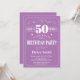 50th Birthday Invitation Purple and White Typography. Purple and White Background. Adult Birthday. Male Men or Women Birthday. Kids Boy or Girl Lady Teen Teenage Bday Invite. 13th 15th 16th 18th 20th 21st 30th 40th 50th 60th 70th 80th 90th 100th. Any Age. For further customisation, please click the "Customise it" button and use our design tool to modify this template.