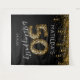 Fun 50th birthday party photo booth backdrop featuring a trendy black background, gold glitter and confetti, 50 leopard print hellium balloons, the birthday girl/boys name, and date.