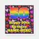 This fun and happy birthday-themed paper napkin design features a large number “50” with a rainbow spectrum gradient inspired pattern, along with the message “Happy 50th Birthday,”, and a custom name. The background features a pattern of purple, pink, and red heart shapes. Friendly, cheerful paper napkins like this might be fun to have at a birthday party/celebration being held to celebrate somebody’s 50th birthday. [~Z0000550]