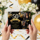 Perfect for a fifty birthday party celebration, the modern layout combines bold typography with luxurious gold elements to create a high-end look that feels festive, confident, and timeless. The black background enhances the glittering gold details, giving the design a dramatic, upscale feel ideal for an evening celebration or chic venue.