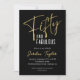 50th Birthday Modern Minimal Script Black & Gold Invitation